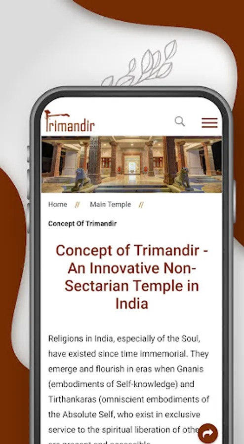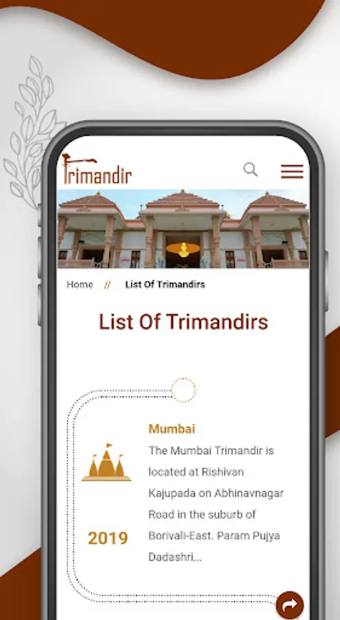 This app is designed to provide information of the main Trimandir in Adalaj (Gujarat, India) along with the other Trimandirs built at various places. The Trimandir is a non-sectarian concept of a temple established by the Param Pujya Dada Bhagwan whose intent behind it was to remove the difference of opinions in religions.