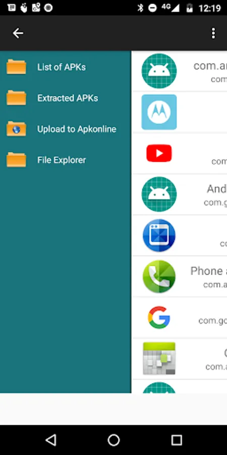 - It has a fragment view where all the extracted APK appears in a listview.