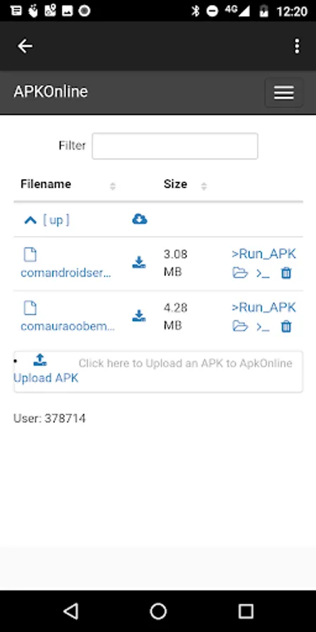Additionally, you can also upload or download the APK extracted to your personal space of the ApkOnline website, which is an APK downloader and uploader where any developer can run an Android app online. This is useful if you want to test your APK using the ApkOnline online android emulator instead using your own device. You can also search for any APK in such platform.