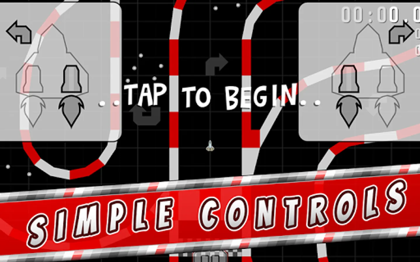 Realistic physically modeled rocket-style controls, though implemented as simple two-finger controls. Want to move your kart forward? Fire both thrusters. Turn right? Fire left thruster. Reverse thruster controls are also available for advanced play, allowing tighter turns, flat spins and better drift control - but only for star pilots that can handle it, and only if you choose to, otherwise go with the simpler controls.