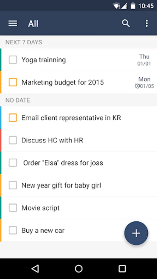 7. Sort your tasks by due date/name/create time/priority