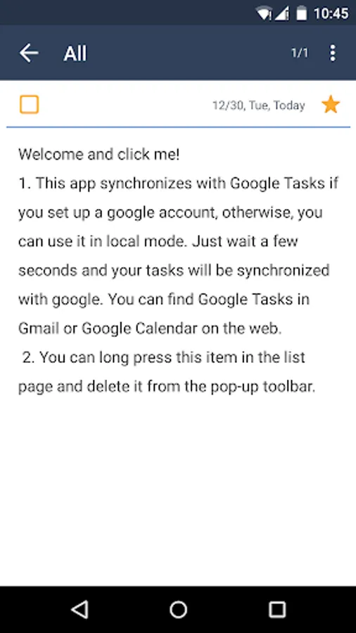 GTasks is a simple and efficient todo / task management app with Google synchronization. You can customize your to do list, set reminder, send tasks to your friends, family members or colleagues and sync with your Google Tasks perfectly. With it, you will never miss a task and focus on what really matters to boost productivity.