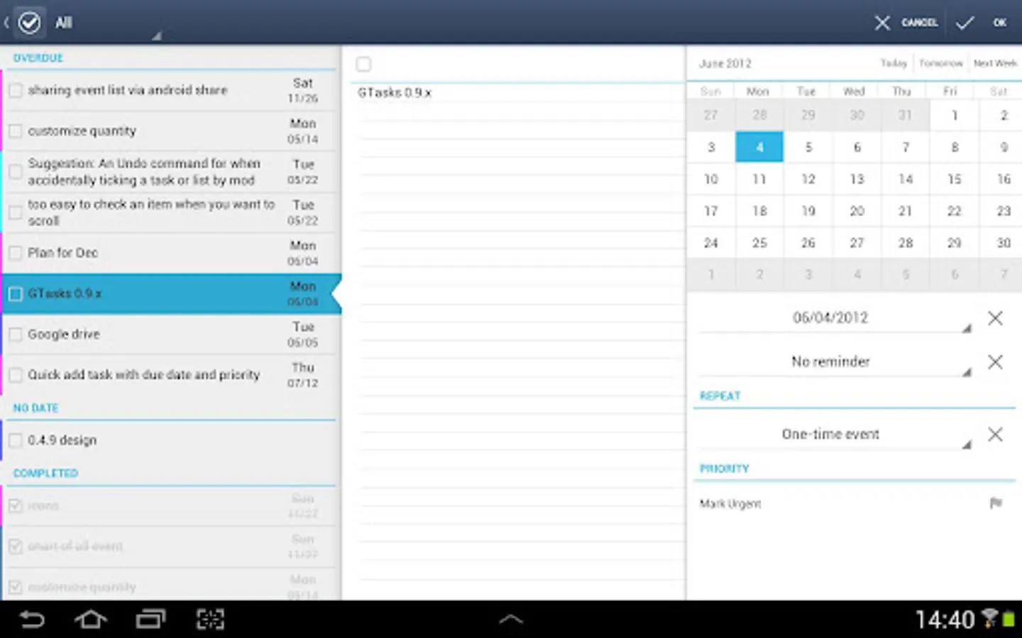 1. ICS(Android 4.0) style with bulk indent/move/set due date/delete and so on