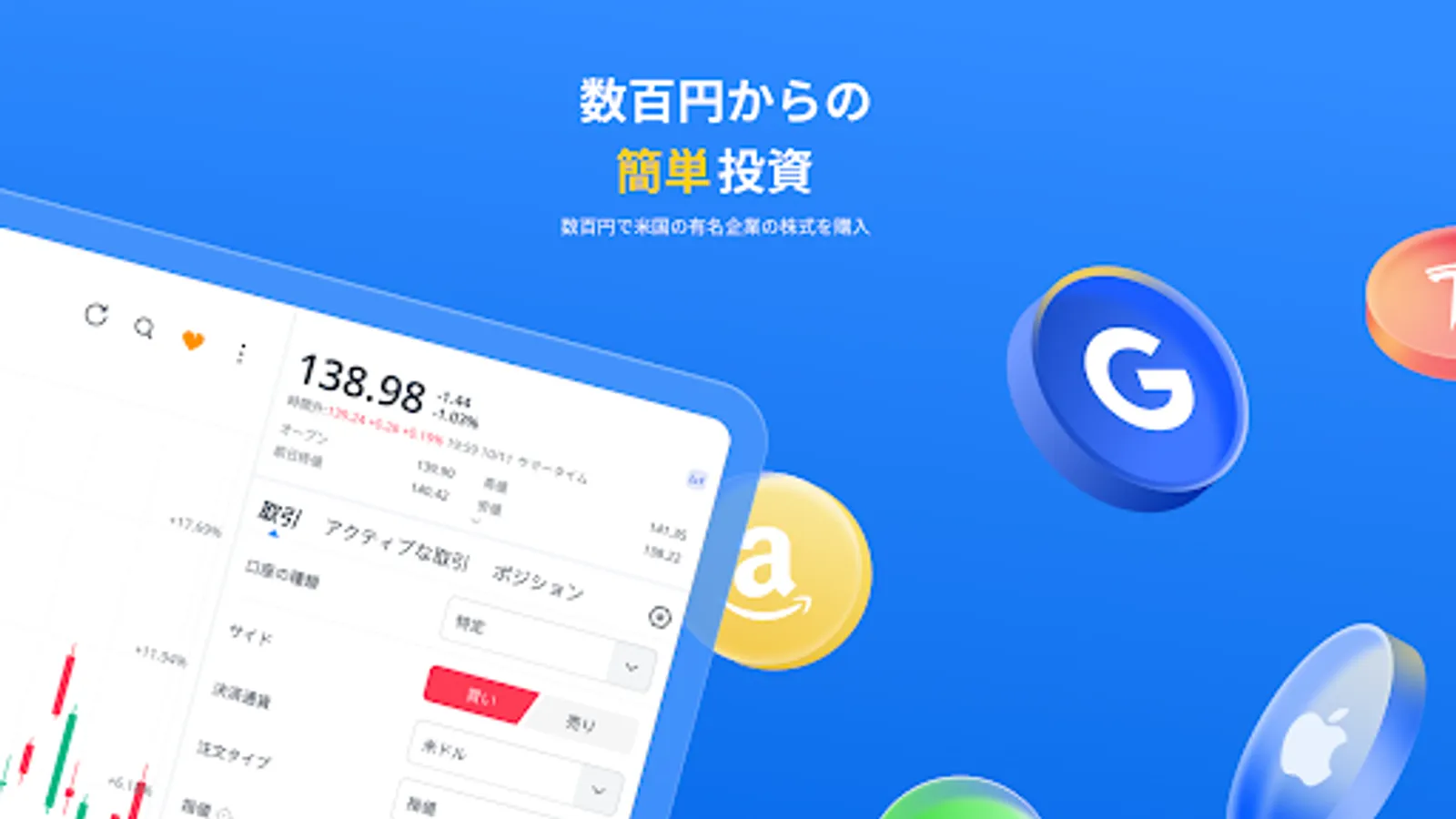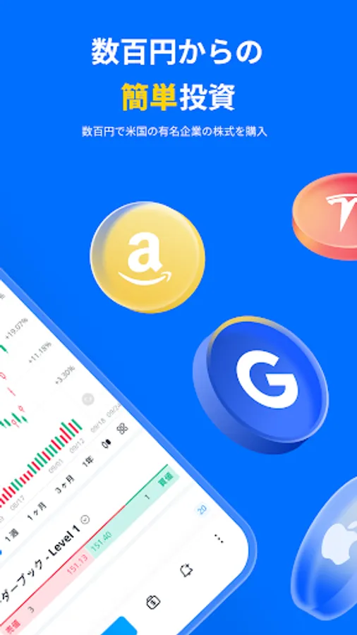 You can invest in about 4,000 or more US stocks and ETFs from a few hundred yen out of about 7,000 stocks handled. Trading in less than one share is also possible. You can easily start investing in famous companies such as Amazon, Apple, and Google.