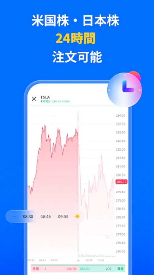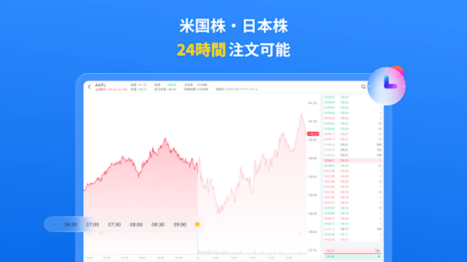 ▼ * US stocks can be ordered 24 hours a day, and real-time trading is possible 16 hours a day.