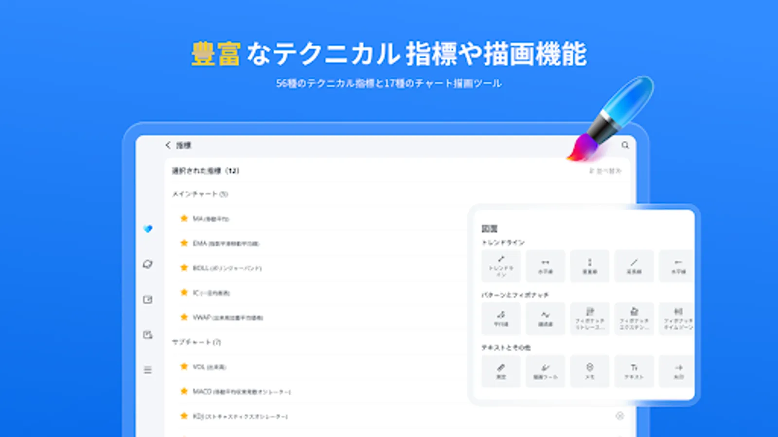 ▼Enhanced technical indicators and drawing functions