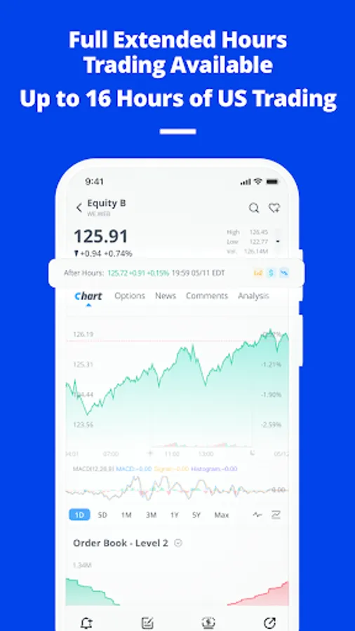 - Seize every market opportunity and trade up to 16 hours (including pre-market 04:00 ET – 09:30 ET & after-hours 16:00 ET – 20:00 ET) in the US market.