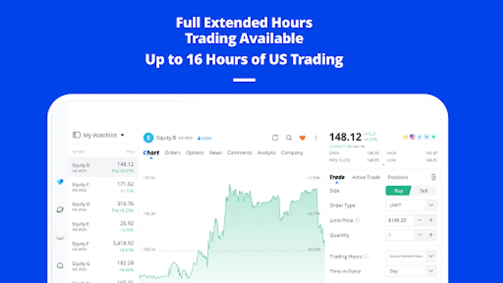 Webull is designed for dynamic and informed investors looking for a great mobile-first trading experience, with in-depth market data, margin trading, and community features packed into the same app.