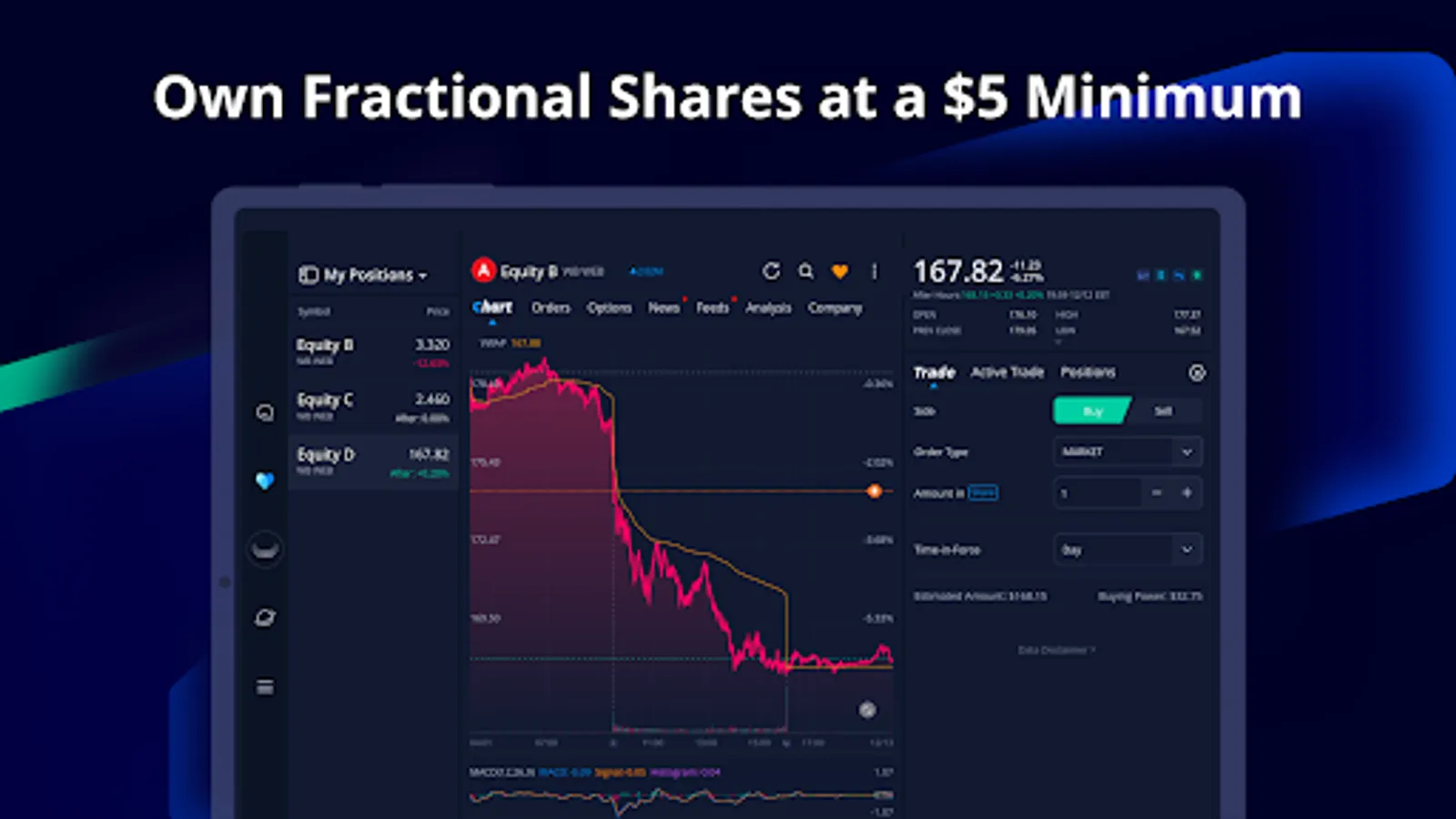 - Invest in your favourite companies and ETFs without purchasing a whole share. Buy fractions of stocks at a US$5 minimum.
