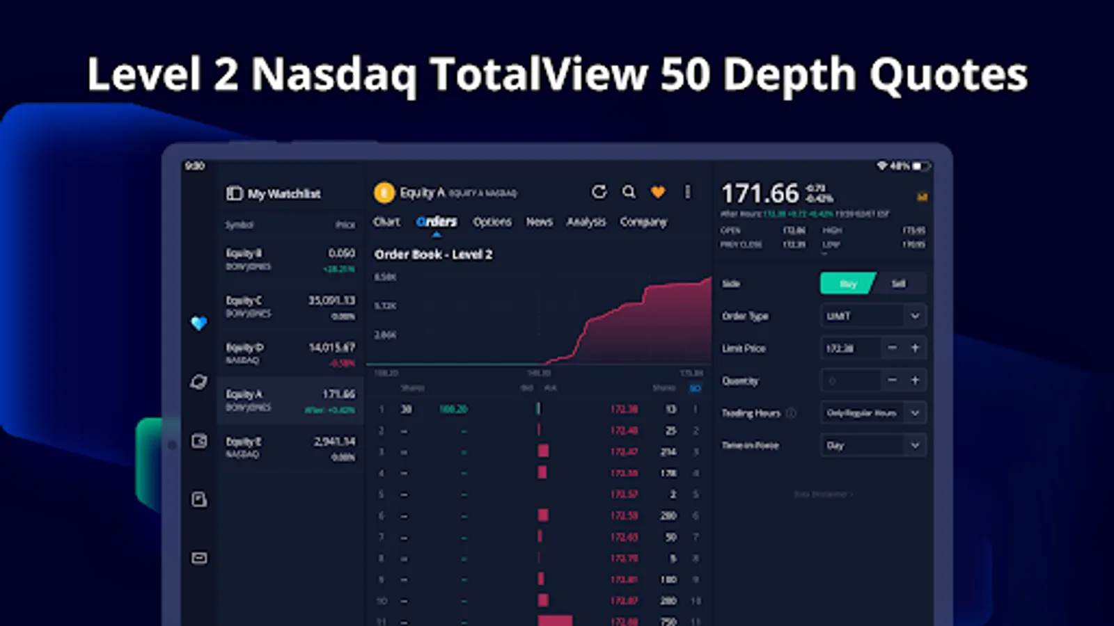 - Real-time market quotes, the best 50 Levels of market depth with Nasdaq TotalView, IPO & Earnings Calendar, and much more.