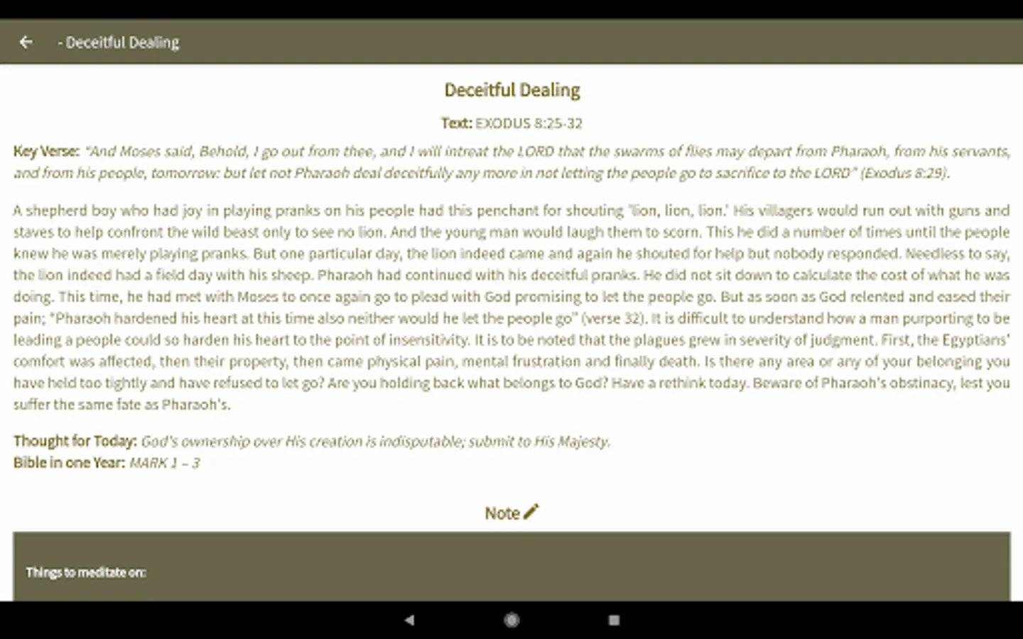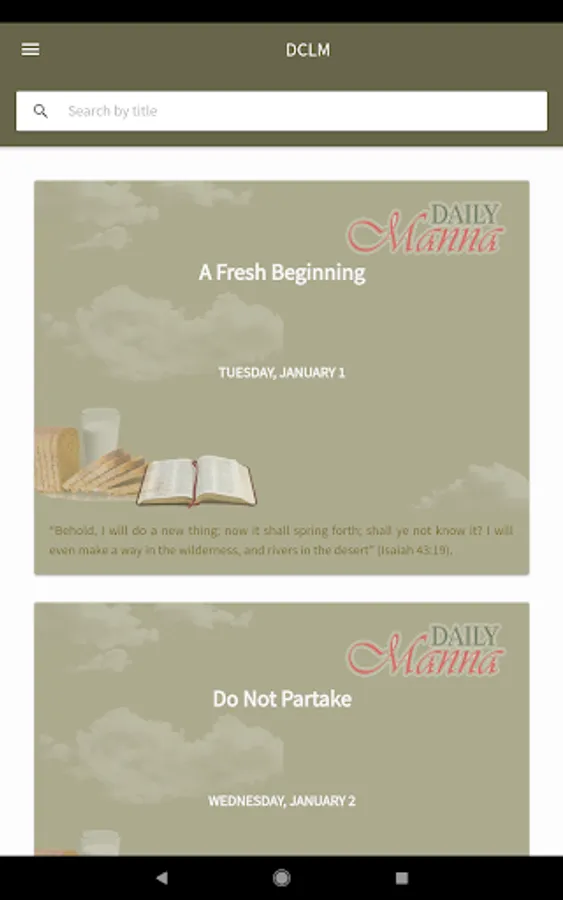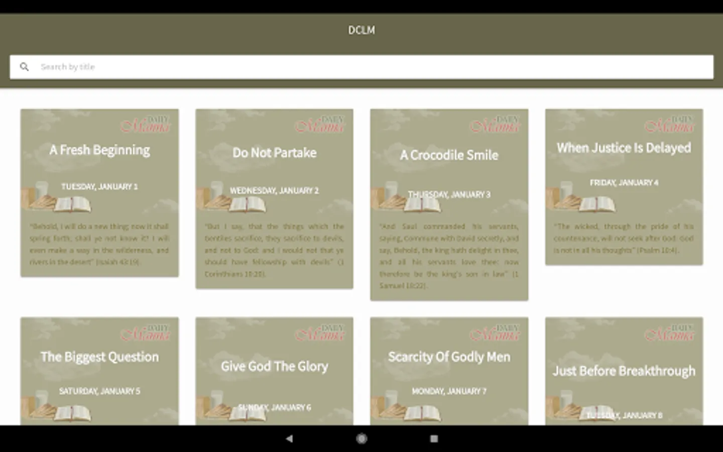A Daily Devotional Guide - Daily Manna sets out to provide spiritual nourishment for the believers who truly seek God and would walk closely with Him. It's an extraction of God's word, which mainly serves to draw sincere seekers closer to God on a daily basis.