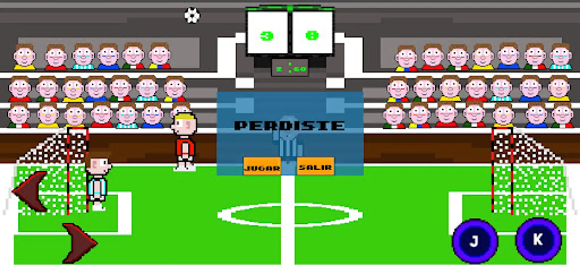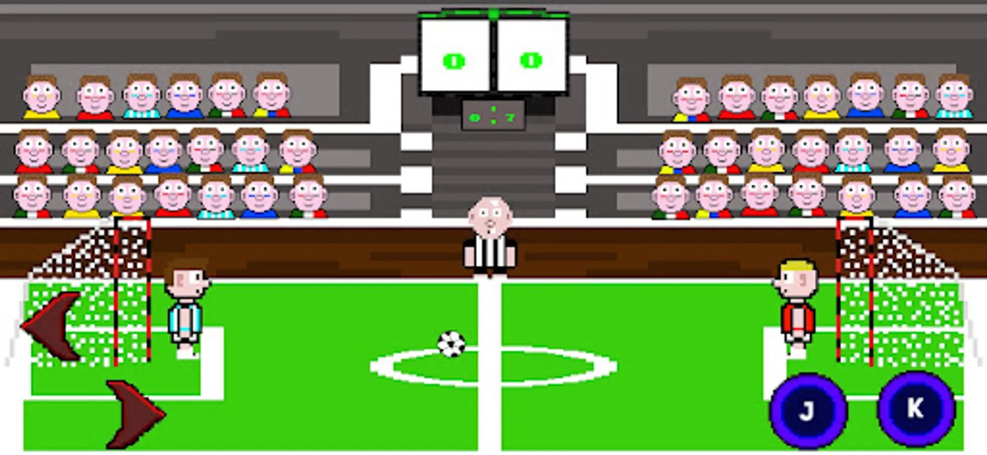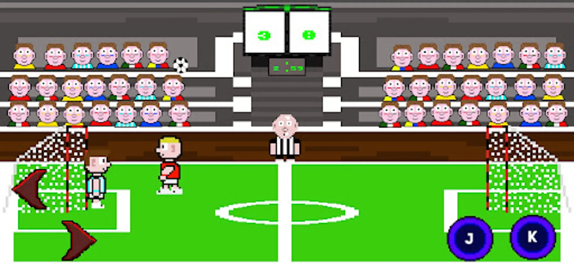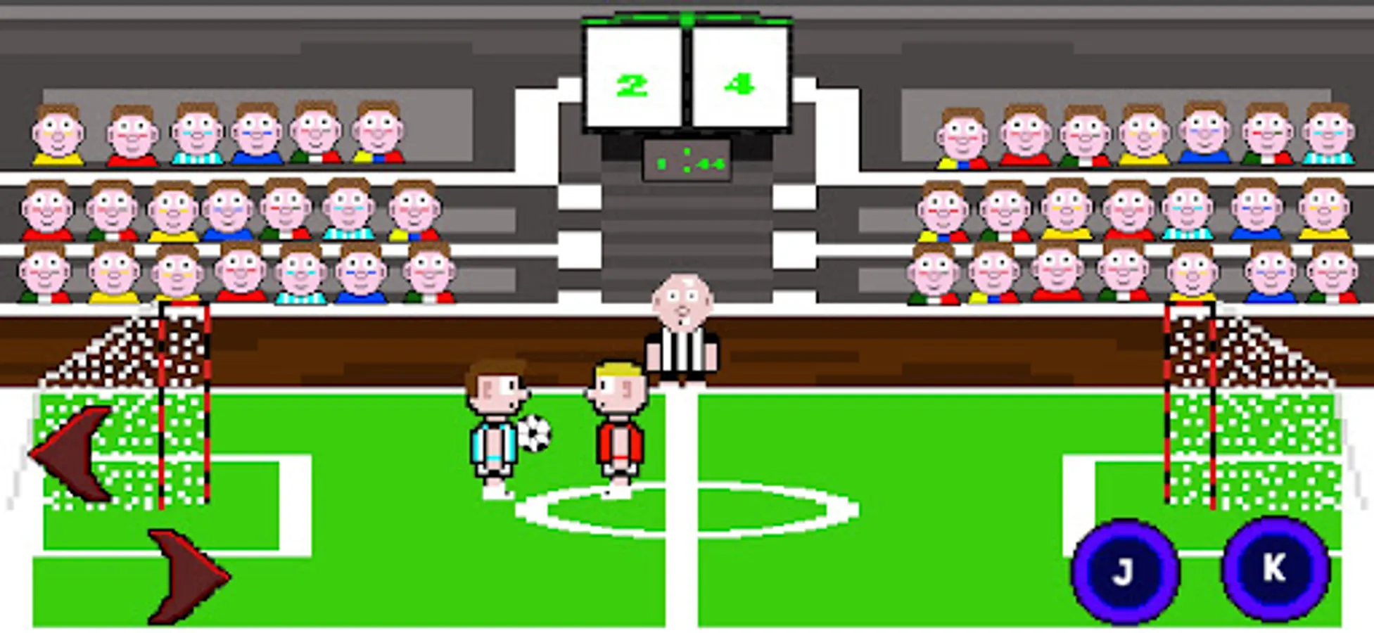 Become the best player by scoring the most goals against the opponent, enjoy the pixel art interface of this great game.