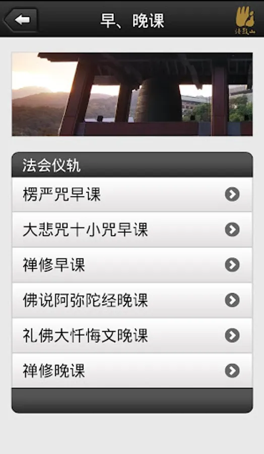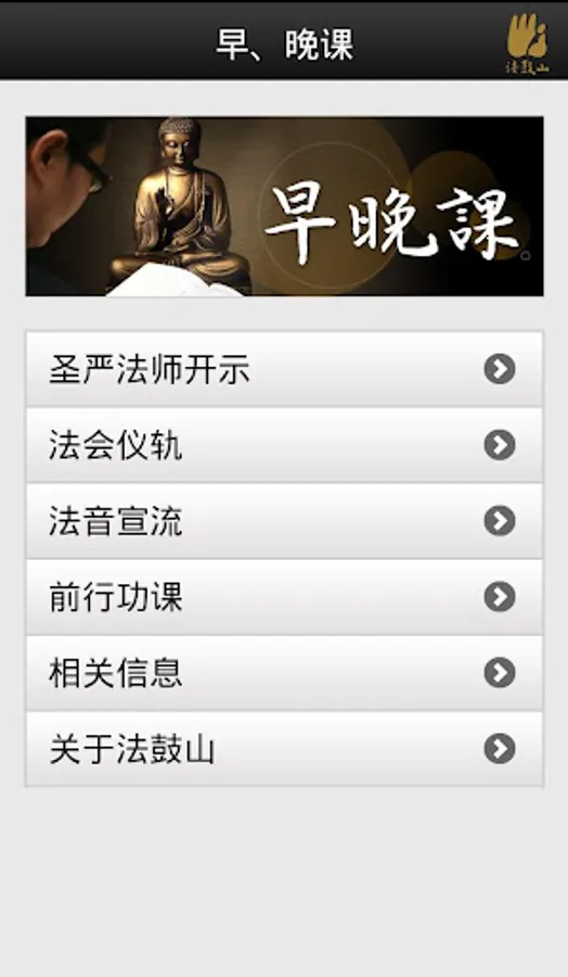 「早晚课」APP收录了圣严法师《心的经典-心经新释》、《佛法纲要-四圣谛、六波罗蜜、四弘誓愿讲记》、《普贤菩萨行愿赞》、〈佛说阿弥陀经-观照自性的归处〉、〈四弘誓愿-亲证菩提的愿心〉、〈普贤菩萨行愿赞-证入法界的万行〉、〈心经生活-找回生命的刻度〉及《人生杂志》等50种文字及影音开示,引领您心游于法海之中,身如沐在三宝的慈光里,以此恒常的定课面对一切顺逆境界,不断增进道业,如圣严法师所说:「时时心有法喜,念念不离禅悦。」的成长体验。