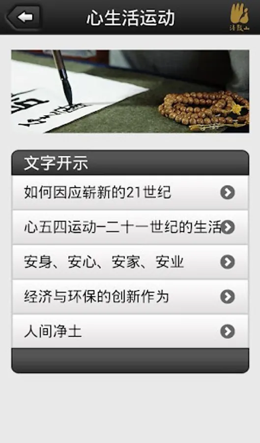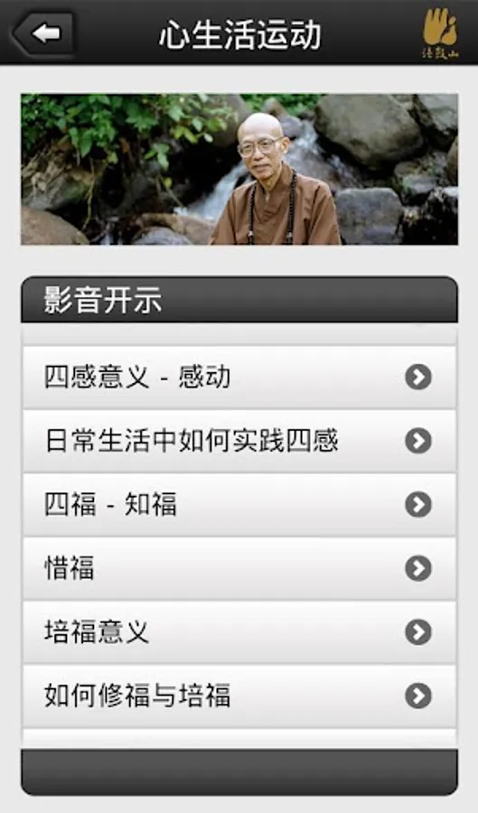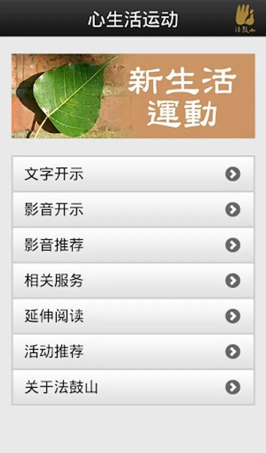 「心生活运动」APP收录了圣严法师《如何因应崭新的21世纪》、《经济与环保的创新作为》、《如何修福与培福》、《不能要、不该要的真义》等20种文字及影音开示,能帮助人找到与自我、与他人、与环境达到平衡的方法。想要得到身心的平安自在吗?「心生活运动」APP给您简单又可行的方法!