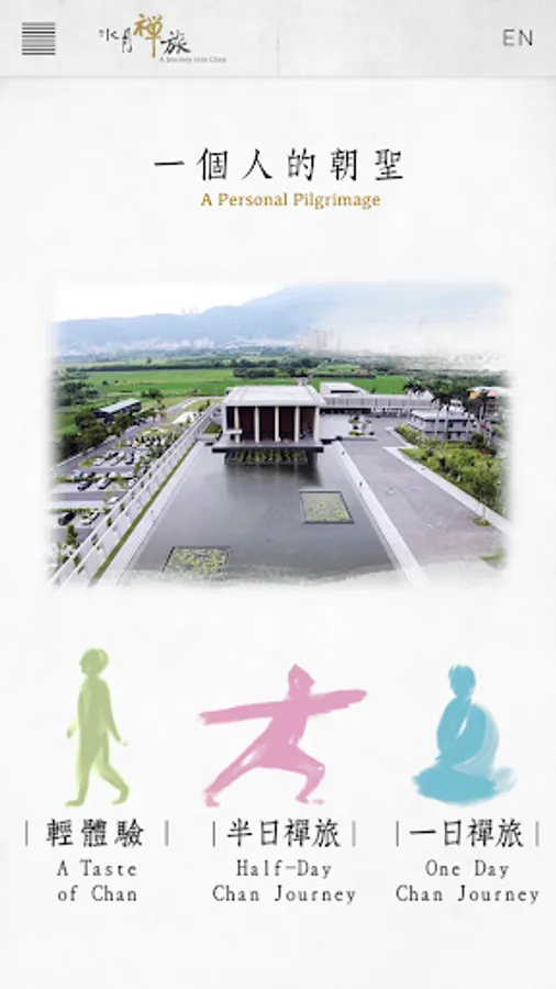 Designed for “A Journey into Chan at Nung Chan Monastery,” the “One-day Chan Journey” app will guide you through the featured attractions at Nung Chan Monastery and their inspiring stories. We invite you to participate in relaxing Chan meditation activities, including mindful eating practice while enjoying a meal at the Dining Hall. During this journey, your body will be relaxed, your mind at peace, and you can be engaged in a deep dialogue with yourself and feel refreshed. It shall be a wonderful spiritual journey that brings you new energy and vitality.