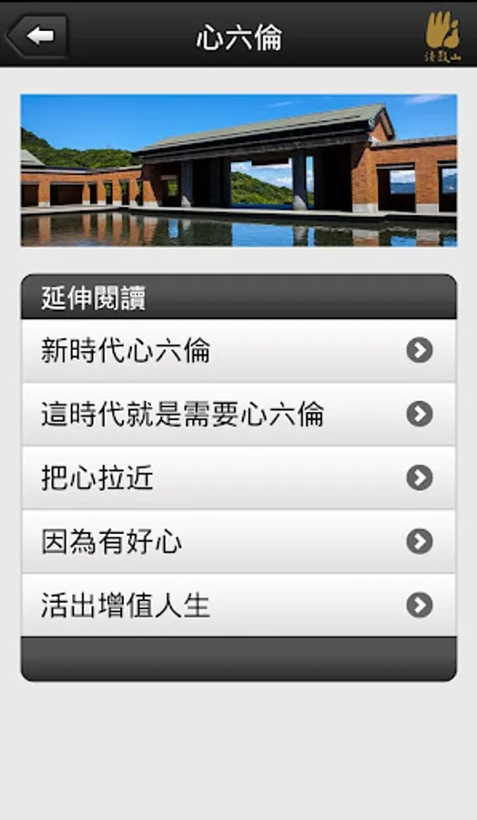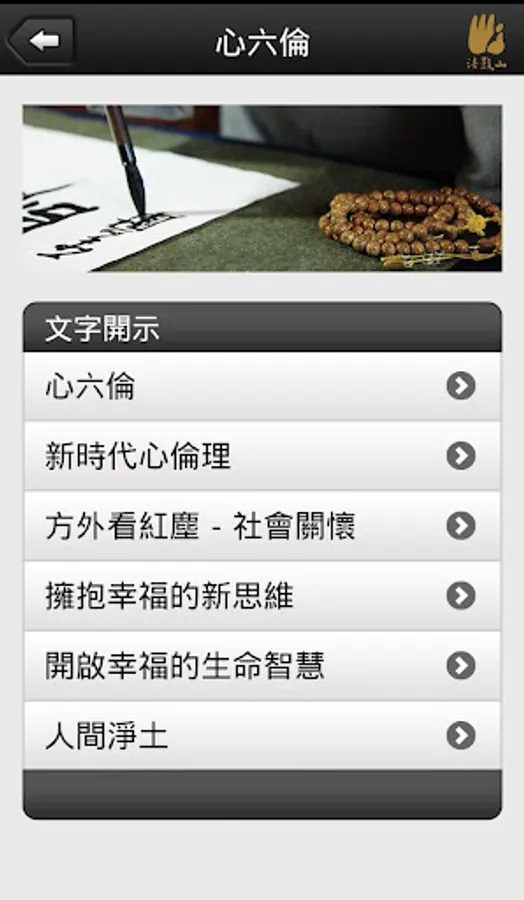 「心六倫」運動是現代人精神與行動的綱領,藉由每個人發願「由我做起」,匯集大眾的正念與正行,使人心得到淨化、社會得到平安。「心六倫」APP收錄了聖嚴法師《心六倫行動方針》、《新時代心倫理》、《方外看紅塵──社會關懷》、《心淨則國土淨》等11種文字及影音開示,還有阿基師和沈芯菱攜手演出的微電影,值得您收藏!
