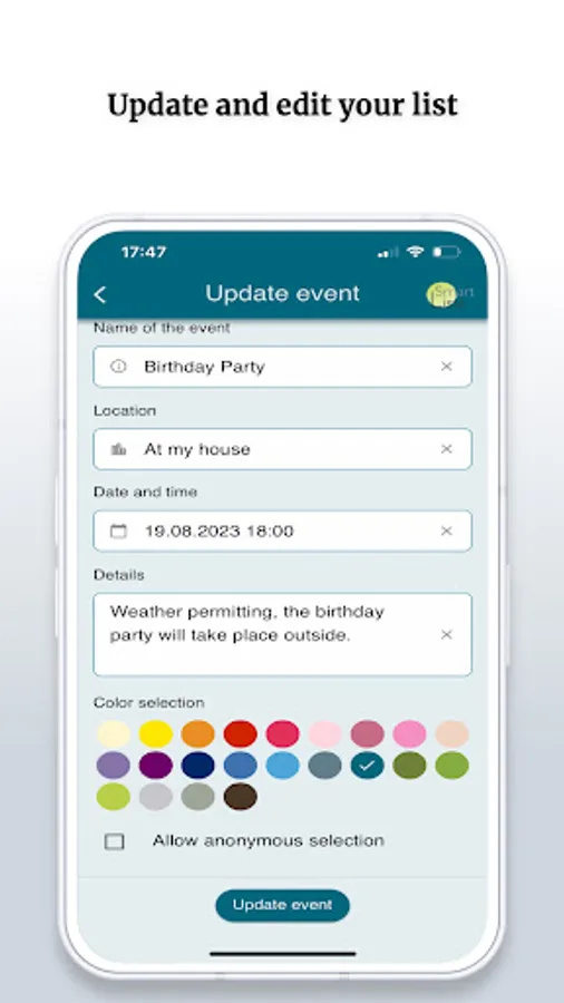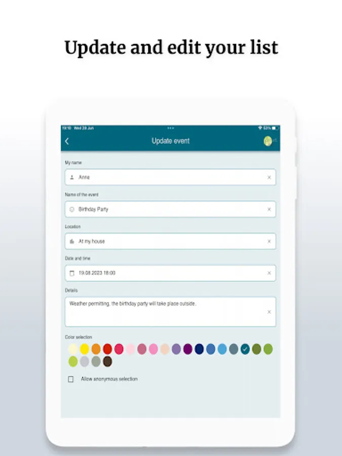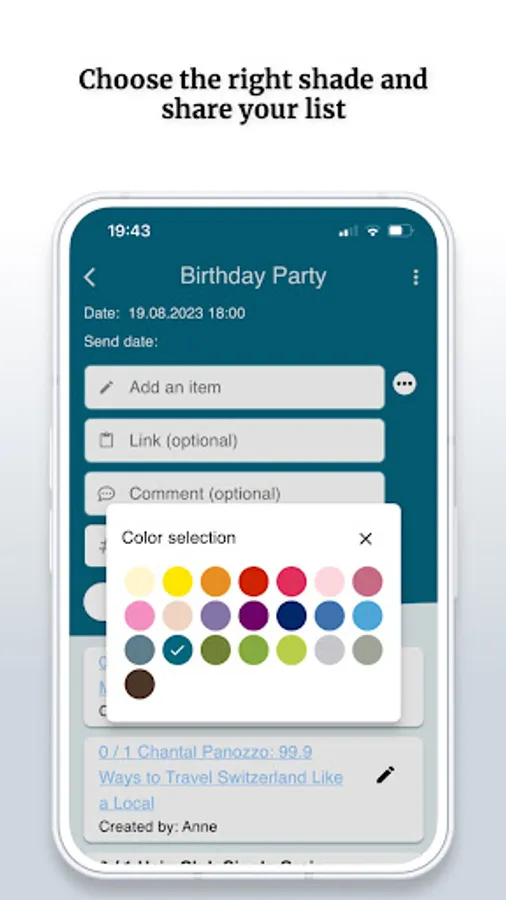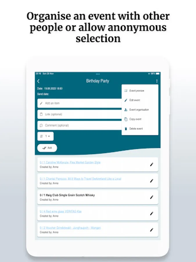 SmartLists is perfect for creating to-do lists. It will help you to organize your occasions and events more easily. SmartLists is suitable for birthdays, wedding parties, Christmas, family celebrations, community events, barbecue and potluck parties, dessert buffets and much more.