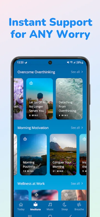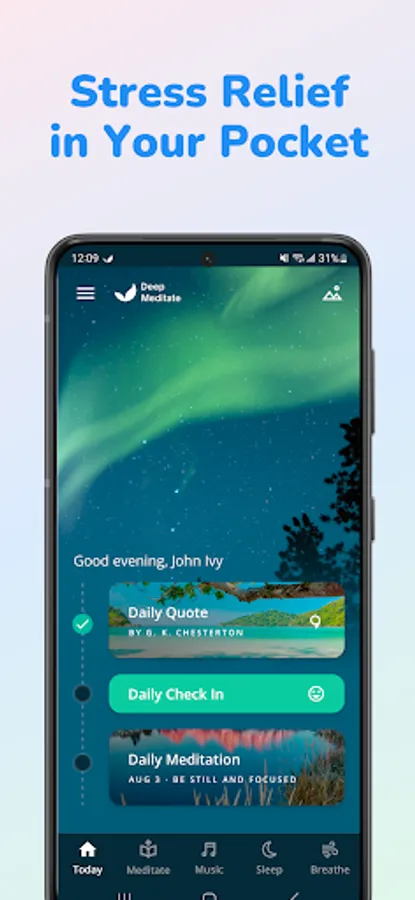 Each of these sections is there to help you. The purpose of this app is to help you sleep better, experience deeper relaxation, and enjoy life a bit more. Simply open the app, select your meditation theme and press play. Simply sit back, relax, and breathe in the tranquility.