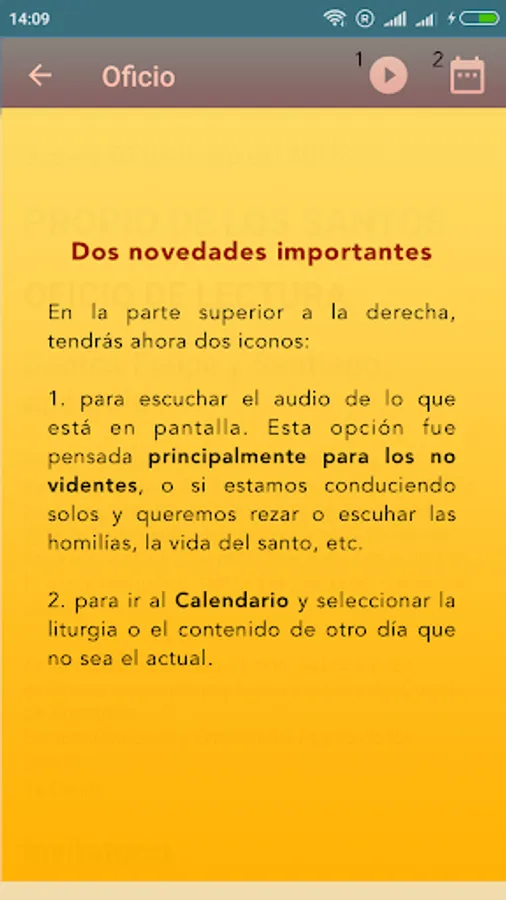 - All the Liturgy of the Mass (Prayers, Readings of the day, etc.)