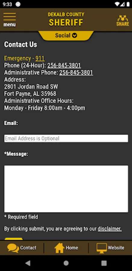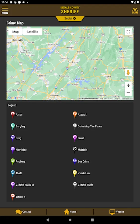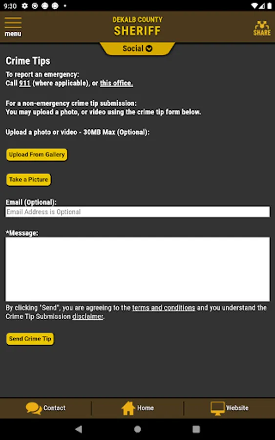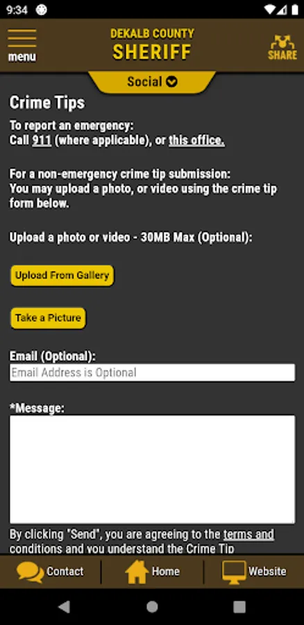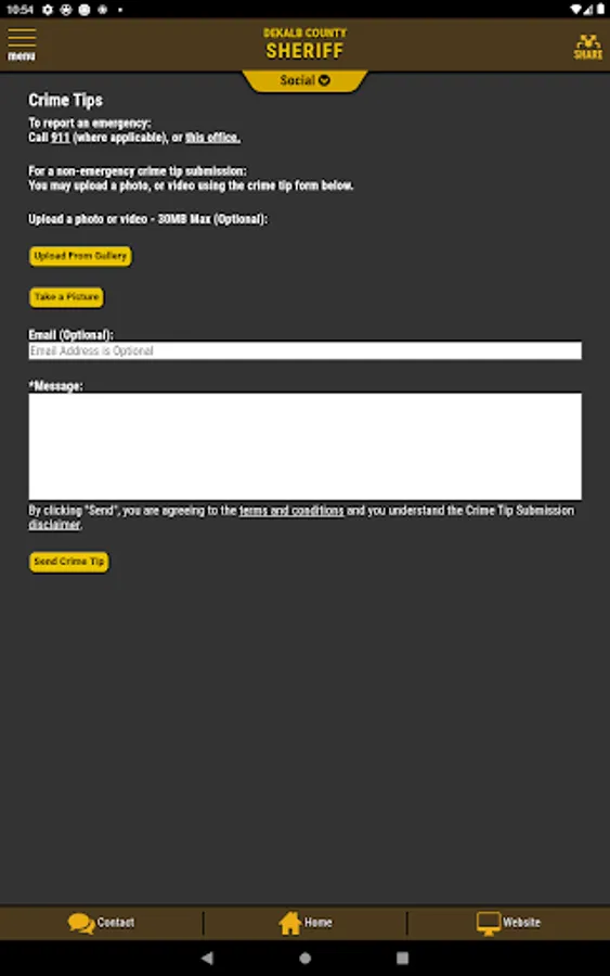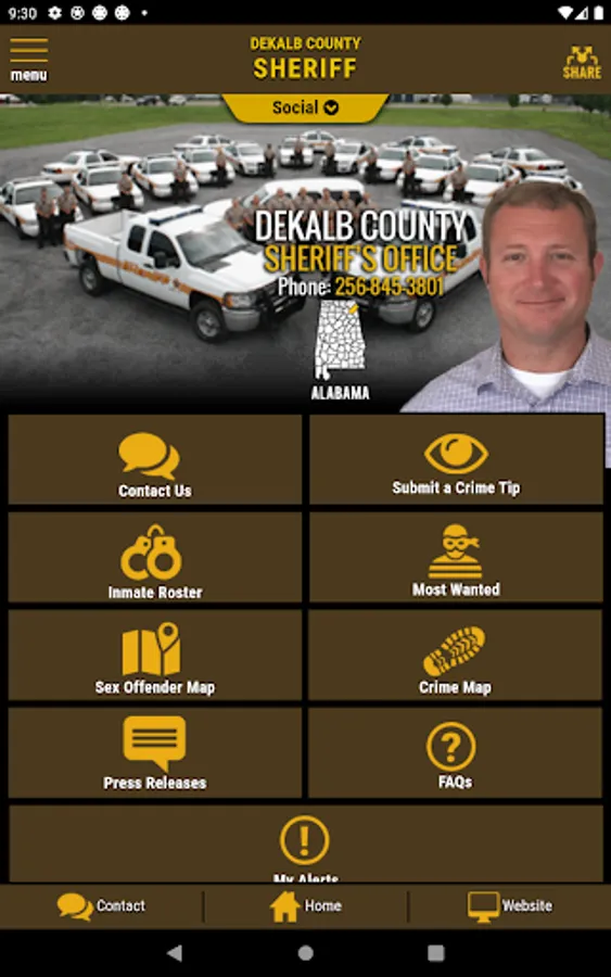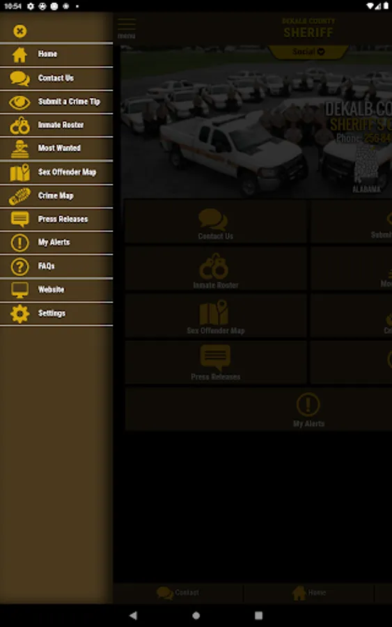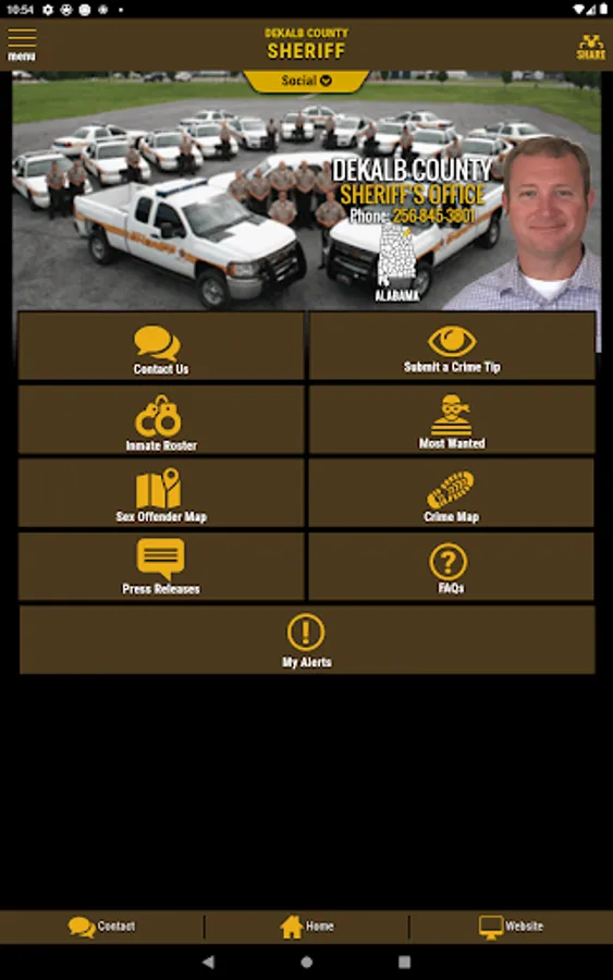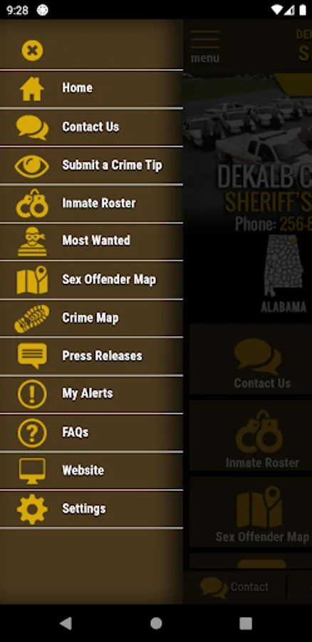 The app has public information for press releases, inmates, most wanted, sex offenders, special alerts, and FAQ's. Crime tips and contact us messages can be sent to the Sheriff's Office.