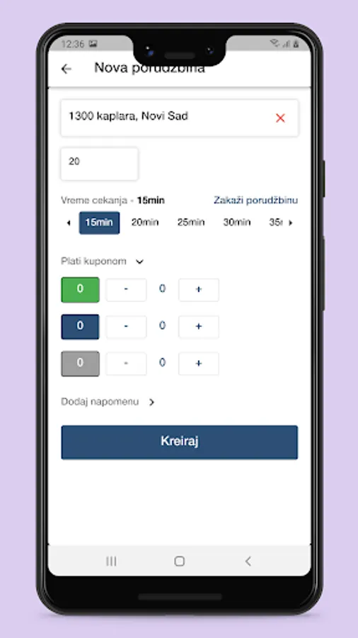 When users order delivery of products from the facilities to their home address, partners enter all the necessary order data into the application - address and time when the order is completed.