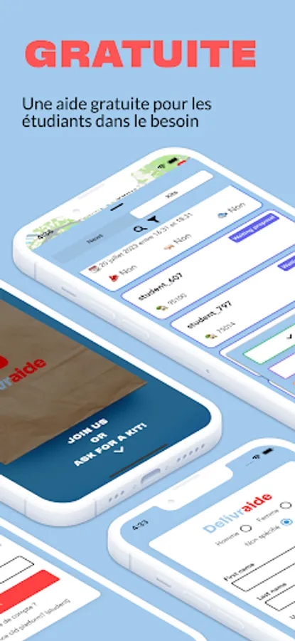 Delivraide is the first digital platform in France that allows students in need to have a fresh and balanced food kit delivered to their homes, made up of 65% unsold food. To do this, we have developed a large network of partners (large brands, restaurants, traders, local market gardeners, etc.) who allow us to collect their unsold products and then make kits that are delivered each week by more than 300 volunteer deliverers across France.