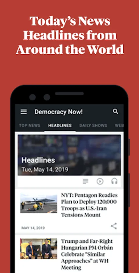 Conversations with people on the front lines of the world’s most pressing issues. On Democracy Now!, you’ll hear a diversity of voices speaking for themselves, providing a unique and sometimes provocative perspective on global events.