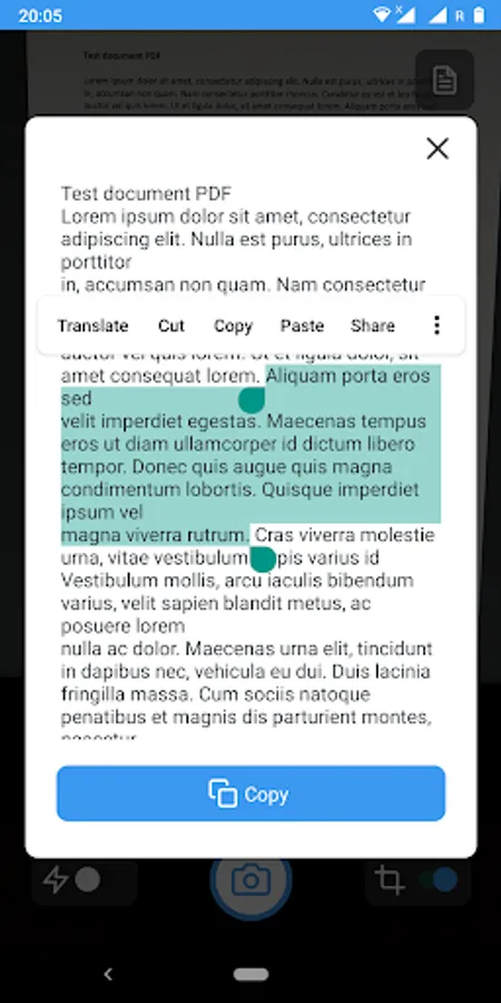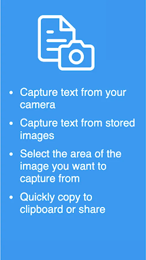 It lets you capture text from your camera, select the area of the image you want to capture from and quickly copy to clipboard or share!