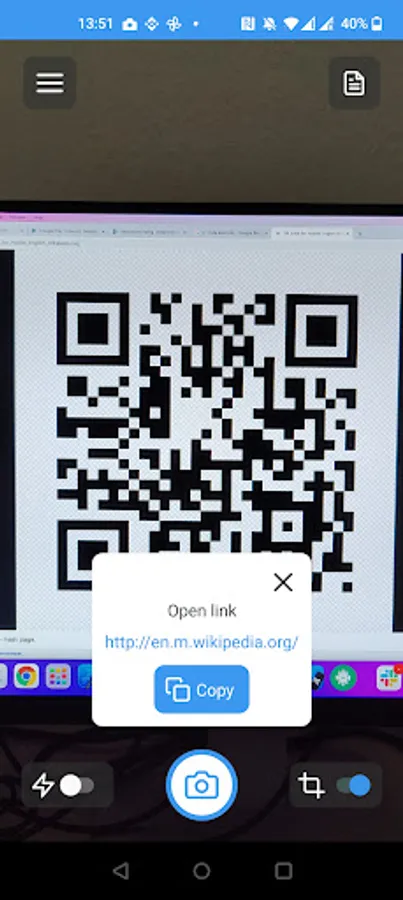 It also recognises QR codes and bar codes and provides a link/code.