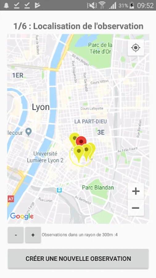 Place the cursor on the map where the observation you want to submit is. Check that it does not already exist, if necessary, you can add a comment and / or a photo, or create a new observation specifying the type of problem, its location, its description your proposal to solve this problem and add a photo if needed (recommended to facilitate the treatment of your observation) before sending.