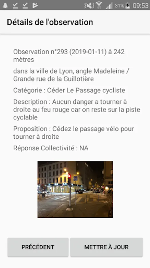 The volunteers of the Lyon association "La ville à vélo" moderate your observations, made available to the technical services of the Lyon area