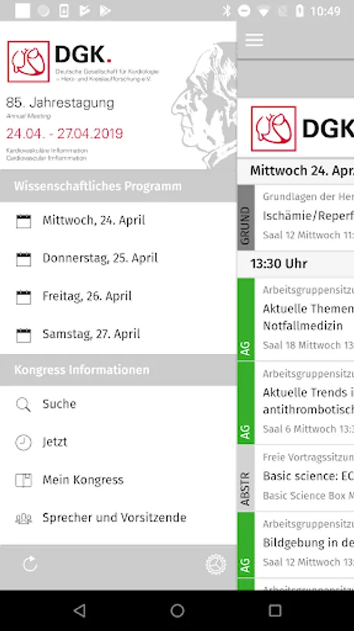 In the app you will find the complete congress program with search function, an overview of all symposia, the working group meetings, the academy forum and the basics of cardiovascular research, the accepted abstracts as full text version, a map of all rooms and much more.