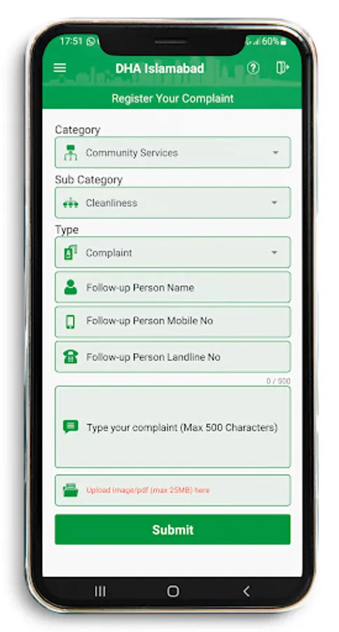 DHAI Mobile App is an integrated DHAI resident grievance redressal system connecting Security and Complaints Management. The system will serve robust call to security in case of dacoity, theft or any unwanted situation and also carrier of complaints to their respective offices across DHA Islamabad. Eventually, the member will be updated through automated SMS system and can track complaints through mobile app. The App will serve as complementary channel between residents and DHA Islamabad.