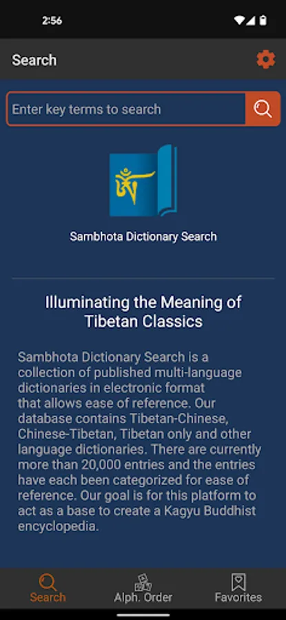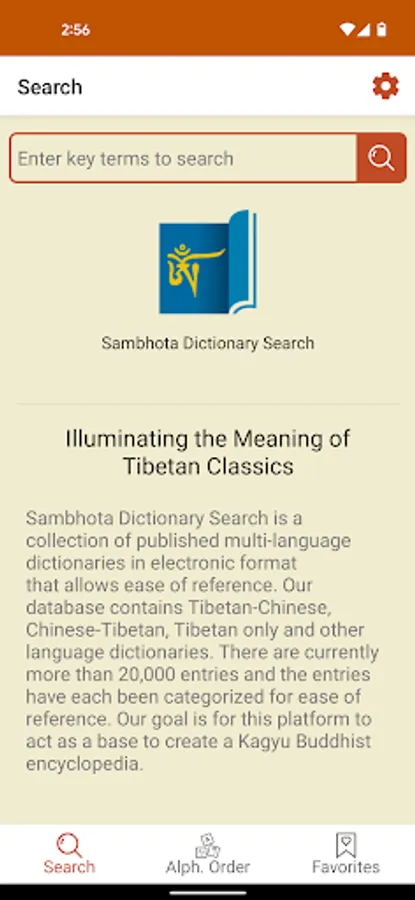 Sambhota Dictionary Search was named after Thonmi Sambhota who was the creator of the Tibetan language. The Dharma Treasure team has used modern technology to create a database comprising of more than 20,000 categorized terms and explanations taken from ancient and modern Tibetan dictionaries, Tibetan Chinese dictionaries, Chinese Tibetan dictionaries and others. Sambhota Dictionary Search is a great reference tool for users learning and studying the Tibetan language.