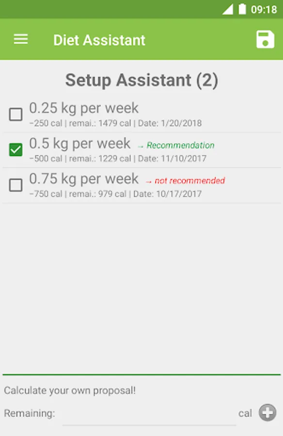 Are you looking for an app that takes your responsibility? Do you want to be motivated every day with calendar mottos? Do you want to hear that you can lose a lot of weight quickly and effortlessly? Then this is not the right app...
