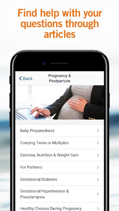 • Explore Tools, including the kick counter, birth plan creator, videos, and screening tests such as the Edinburgh Postnatal Depression Scale.
