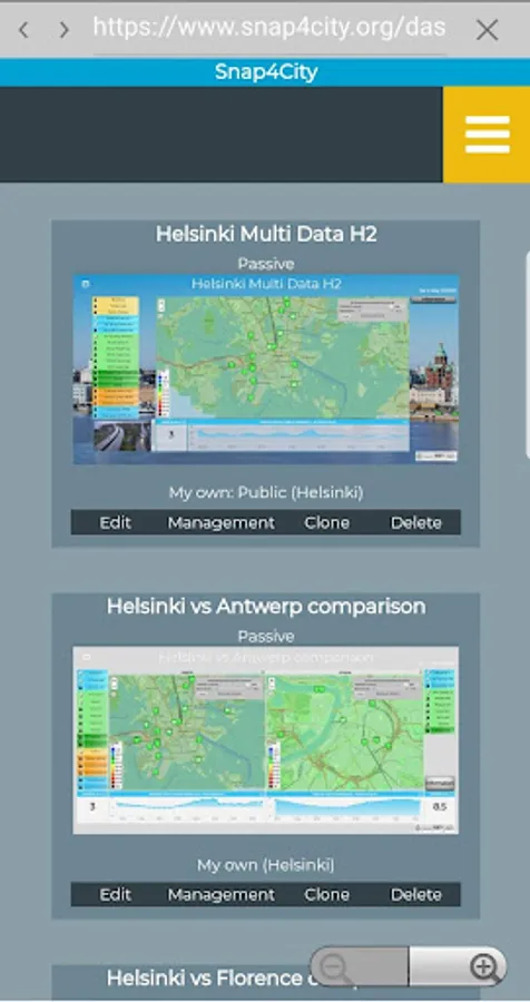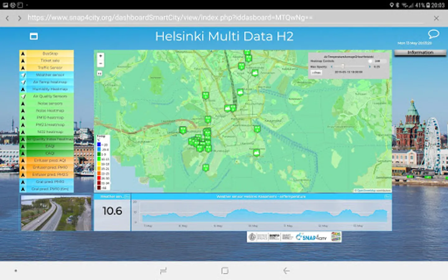 **On Helsinki: Events, Enfuser Air Quality FMI predictions, GRAL predictions, Weather forecast, Mobility** **Please register and fill the questionnaire to get a nice grey Snap4City T-Shirt until August 2019**