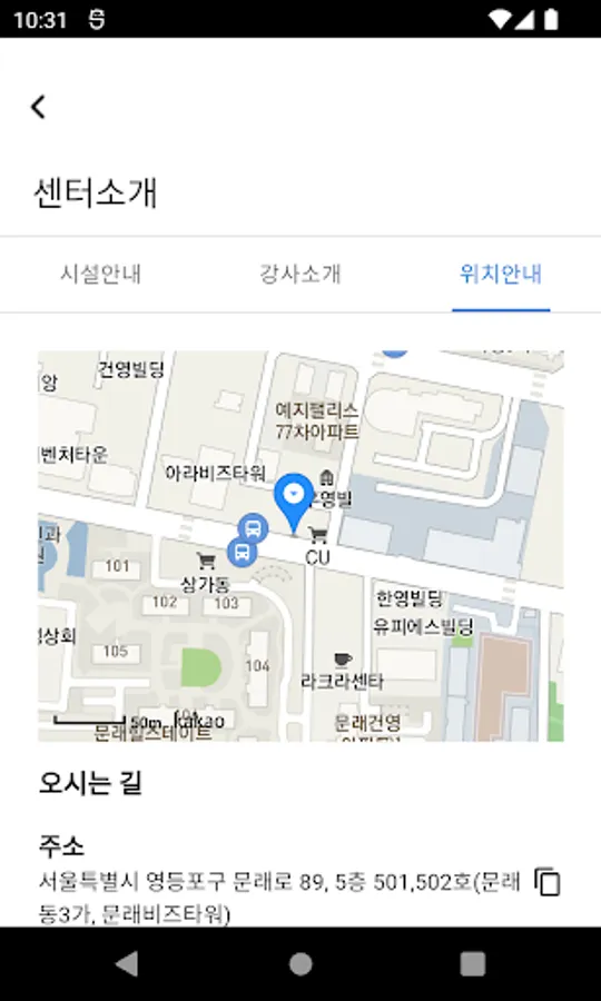 Through the app, you can check the center introduction and directions to the teacher,