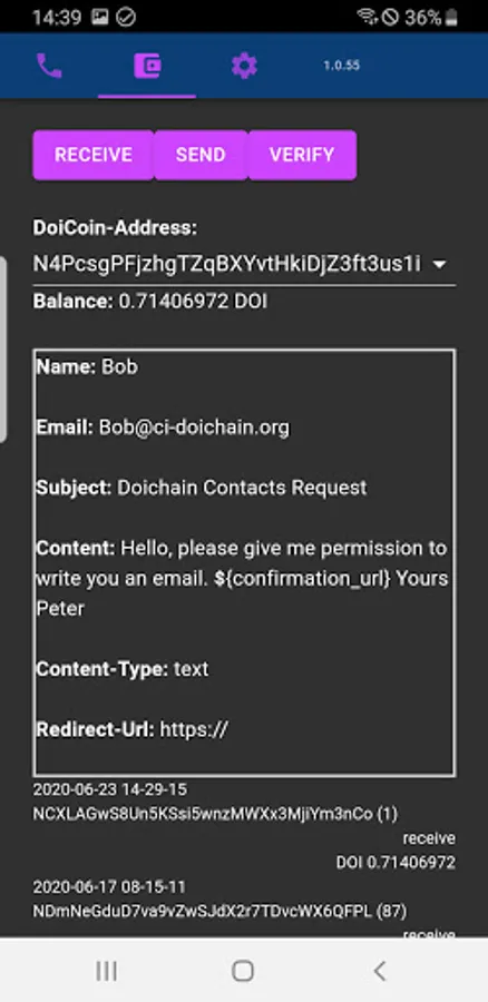 DoiContacts is a crypto wallet that requests email permissions from your contacts and saves the proof-of-existence on a blockchain.
