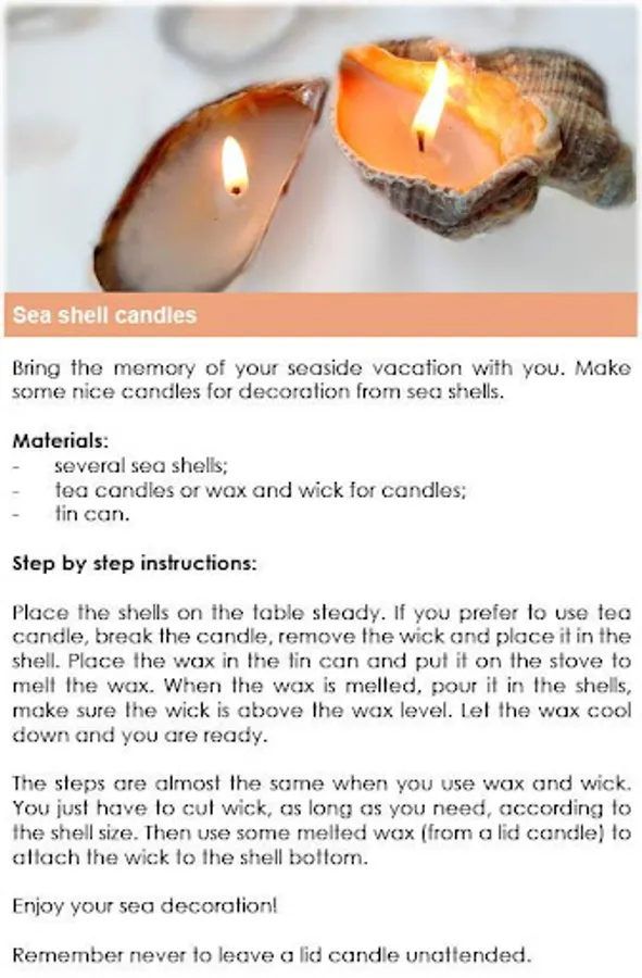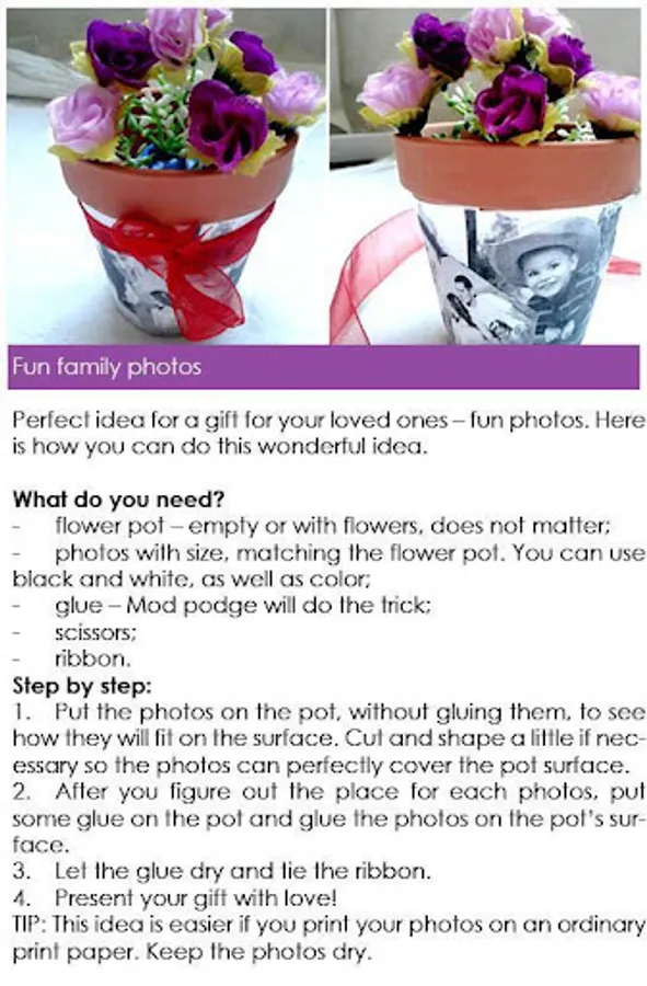 All these great diy arts and crafts in this app are not only amazing crafts to do at home but also great way to reuse and recycle old items instead of just throwing them to the bin. You will be surprised how many unique new things you can create by just using old items - colorful garden decorations, original party ideas, gifts for special person or small item that will bring smile to everybody at home.