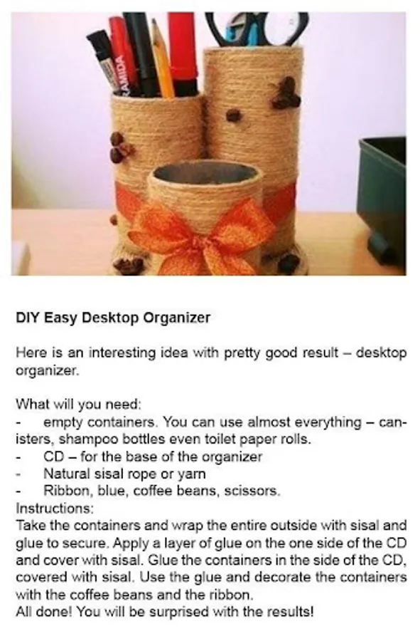 DIY projects is a gallery app suitable for all of you who wants to make things by their hands. Cool wall decorations, small party accessories, nice recycle flower pots and many more. If you want to create diy projects for your room or diy projects for your garden, then this app can give you some ideas.