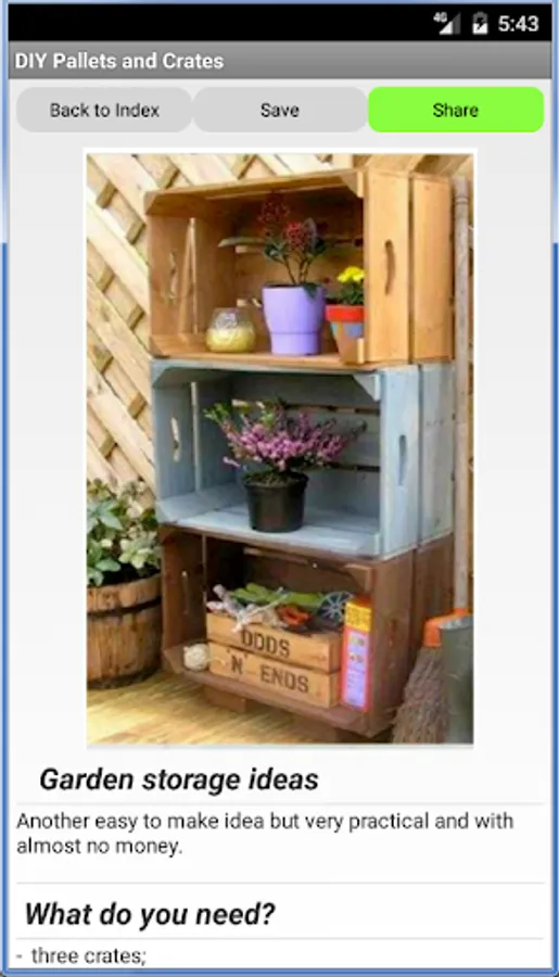 DIY Pallets and Crates is very nice app that offers lots of ideas how to turn old crates and pallets into wonderful garden furniture, storage ideas and many more unique and original things.