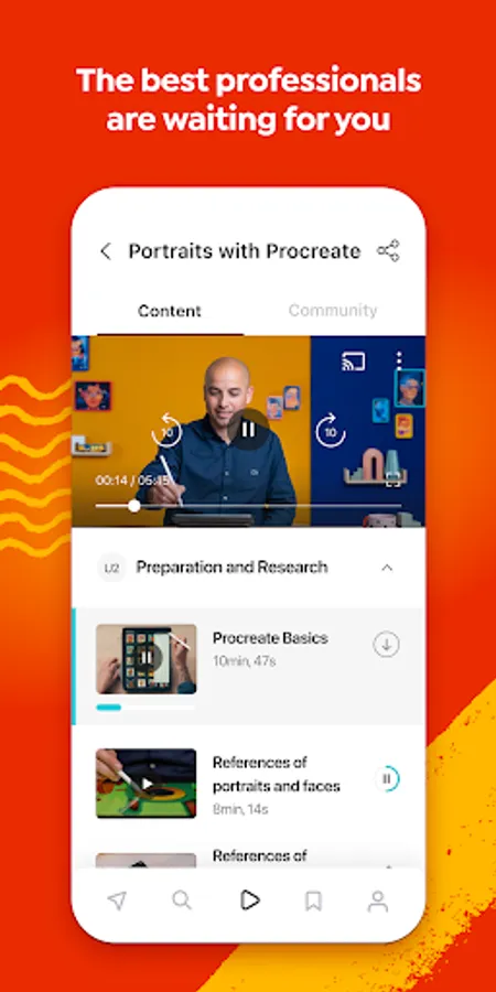 Explore all the different creative categories and find the perfect course. Watch videos online or download them to watch them whenever and wherever you want, even if you aren’t connected to the internet. Choose the language of the audio and subtitles (they’re available in Portuguese, English, Spanish, German, French, Italian, Polish, and Dutch). Participate in the course community and look at other students’ projects. Create lists to save courses for later.