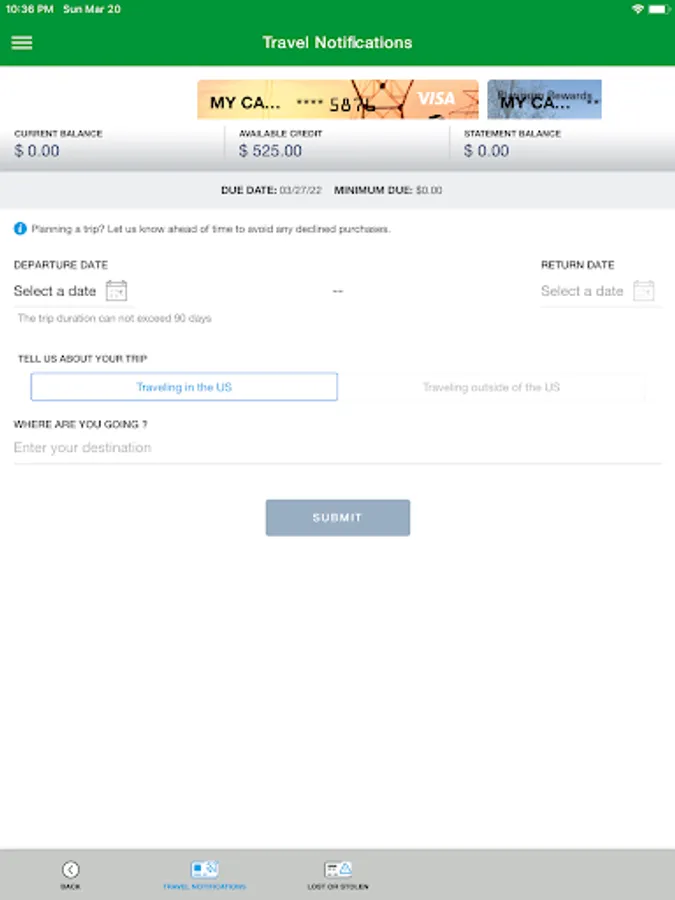 • Set travel notifications.