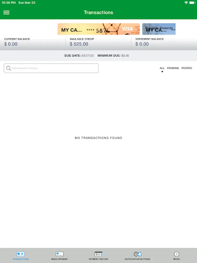 • View recent and pending transactions.