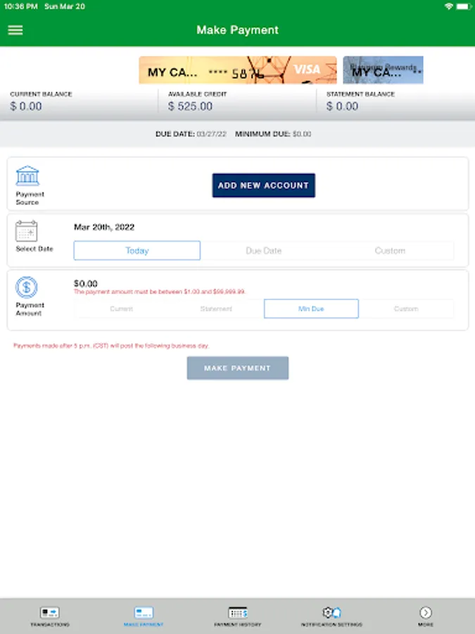• Make a payment to your credit cards.