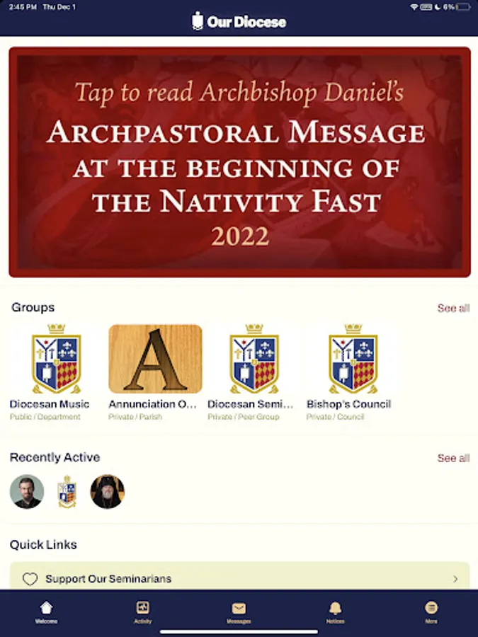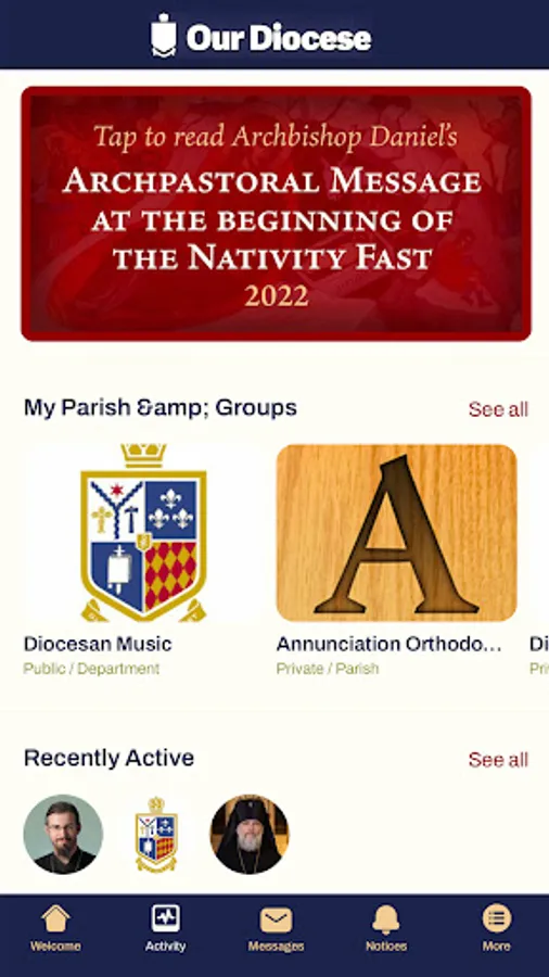 Stay in touch with other churches and members throughout the OCA's Diocese of the Midwest, join your favorite groups and ministries to coordinate, get notified about events, and more.