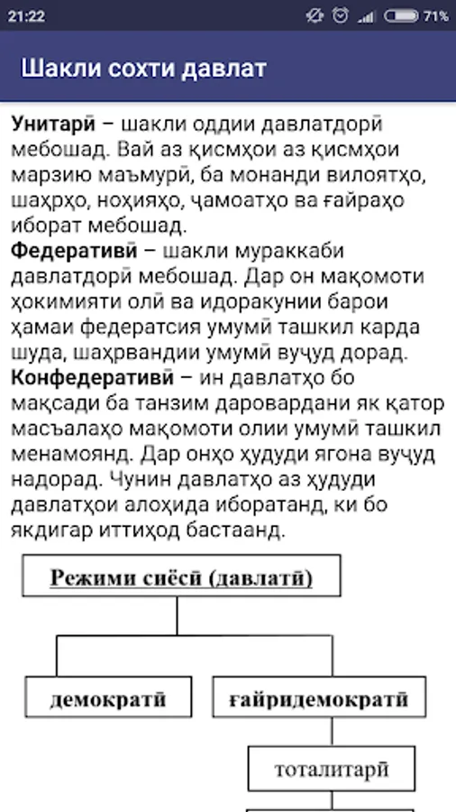 Barnomai mazkur maҷmӯai malamot baroi az hud namudani boz ҳam chuқurtar wa osontari fanny asosҳo davlat wa қuқuқi inson ast, bo masқsadi omӯzishi barnomai darsӣ omodagӣ ba olympiadҳo ravona shudaast. The gift of barnomai mazkur malamot ba soҳaҳoi marbut ba mafҳumҳo gurӯҳbandӣ sudaand.