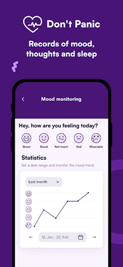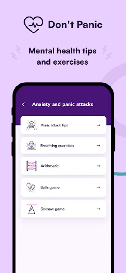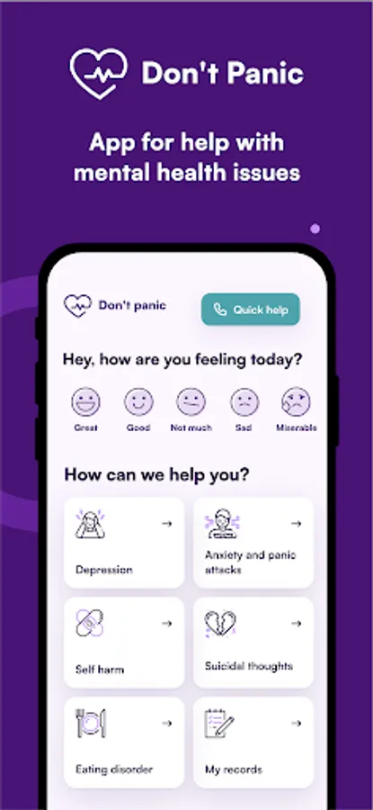 The app has sevenbasic modules: depression, anxiety & panic attacks, self-harm, suicidal thoughts, mood monitoring, eating disorder and professional help resources.