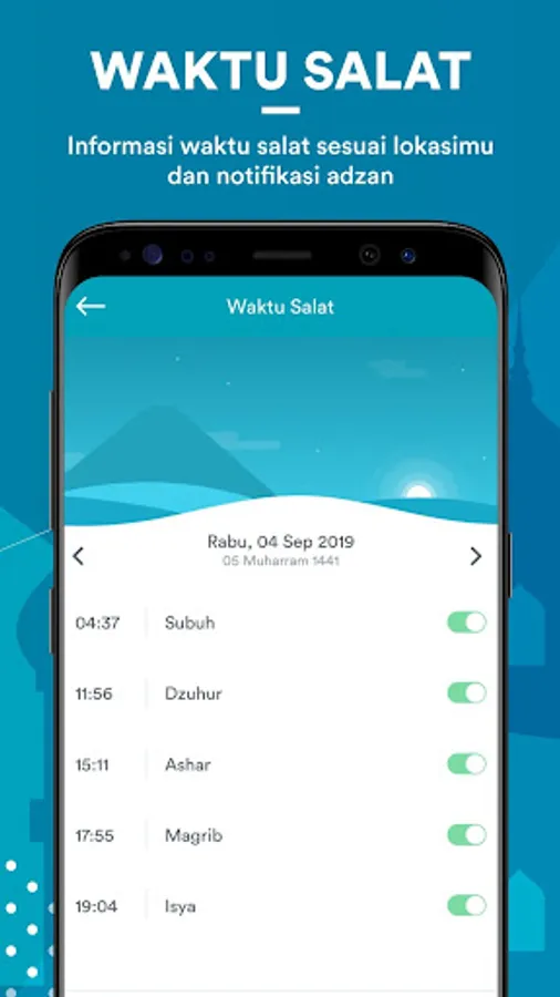 - Prayer Notification: Notification in the form of call to prayer and text information when prayer time has arrived